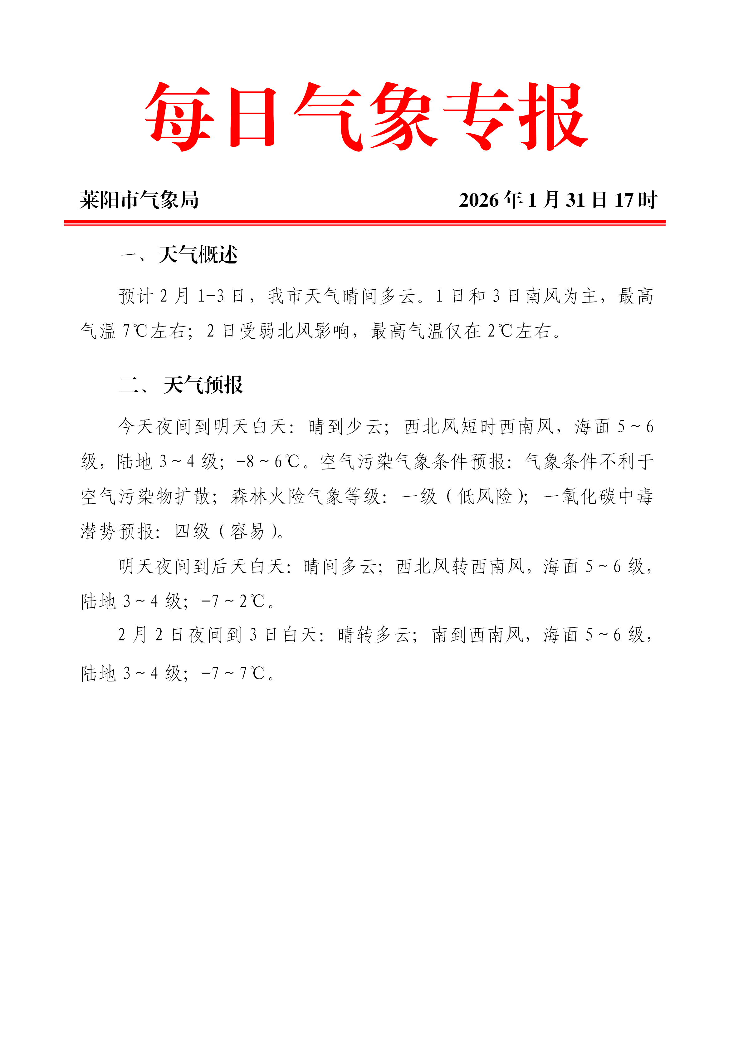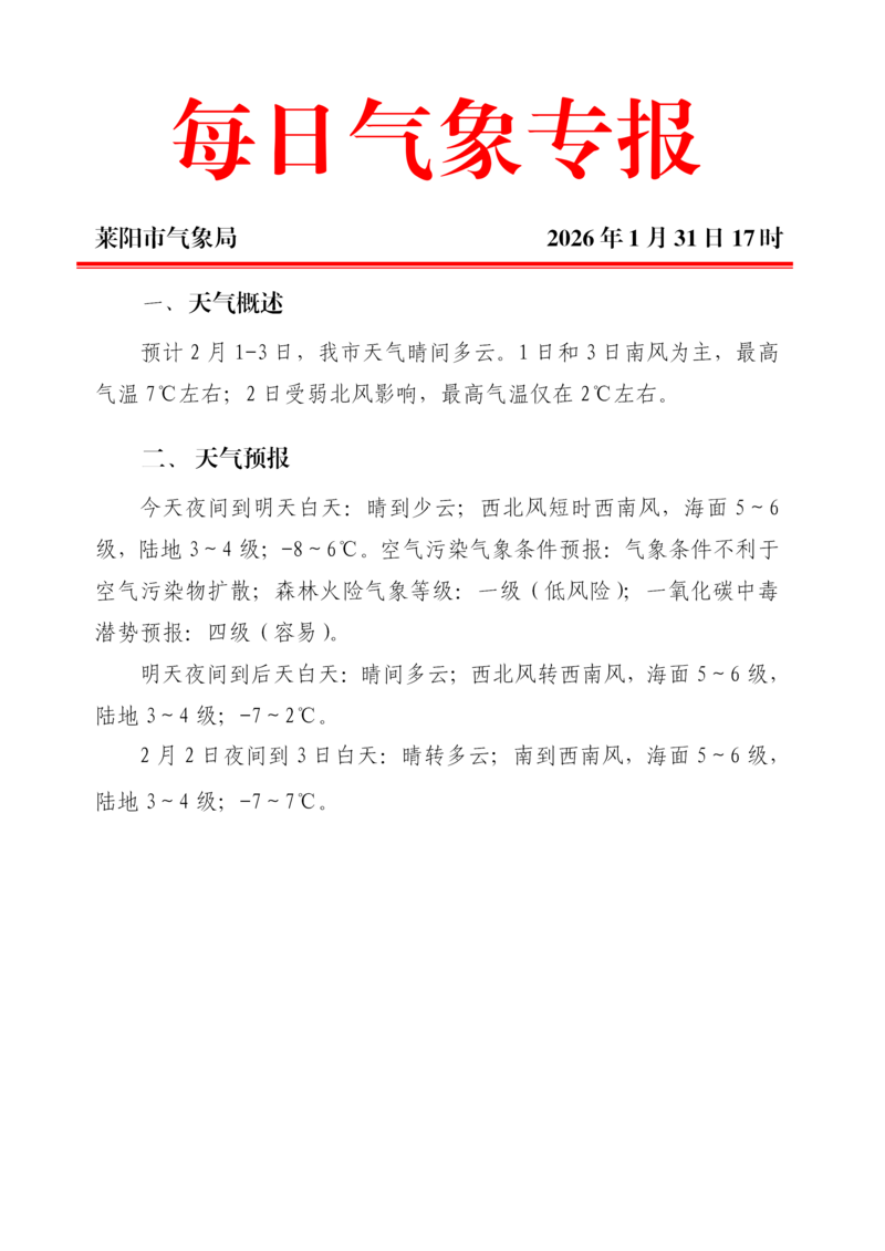 每日氣象專報20260131