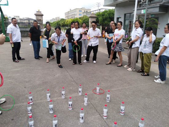 活動一開始,各位“套圈達人”便在舒適的天氣里紛紛大顯身手。每人手握三個套圈,眼神中滿是期待與專注。涼爽的風拂過臉頰,驅散了可能的疲憊,讓大家更能專注于瞄準目標。有的同事站在指定位置,微微屈膝,身體前傾,瞄準目標后,手腕輕輕一抖,套圈便如離弦之箭般飛了出去,在空中劃過一道優美的弧線,精準地落在心儀獎品上,贏得周圍一片喝彩;有的同事則采用穩健的投擲方式,小心翼翼地調整角度和力度,仿佛在進行一場精密的操作;還有的同事心態輕松,帶著幾分隨性拋出套圈,享受這涼爽天氣里游戲過程中的樂趣。現場氣氛熱烈非凡,大家互相加油鼓勁,歡聲笑語隨著微風回蕩在籃球場上空。