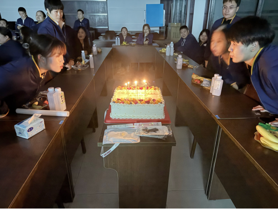 為了給壽星們打造專屬的浪漫與驚喜,人資的小伙伴們提前忙碌起來。桌上整齊擺放著新鮮飽滿的水果、琳瑯滿目的零食、晶瑩剔透的飲料,還有那點綴著奶油與鮮果的生日蛋糕,每一處細節都藏著滿滿的心意。當壽星們走進布置一新的會場時,眼中的驚喜與笑意,便是對這份用心最好的回應。