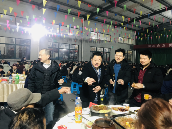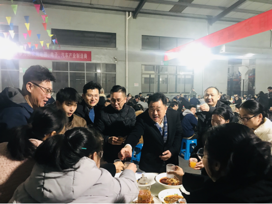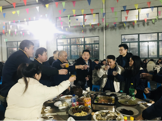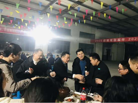 走進(jìn)聚餐現(xiàn)場(chǎng),喜慶的氛圍撲面而來。色彩鮮艷的彩旗迎風(fēng)飄揚(yáng),靈動(dòng)又熱烈,將現(xiàn)場(chǎng)的年味拉滿;醒目的橫幅高懸其上,字里行間承載著公司對(duì)全體家人的期許與祝福,每一處布置都藏著用心,每一縷氣息都透著團(tuán)圓,讓遠(yuǎn)離家鄉(xiāng)的伙伴們,也能感受到家一般的溫暖與歸屬感。